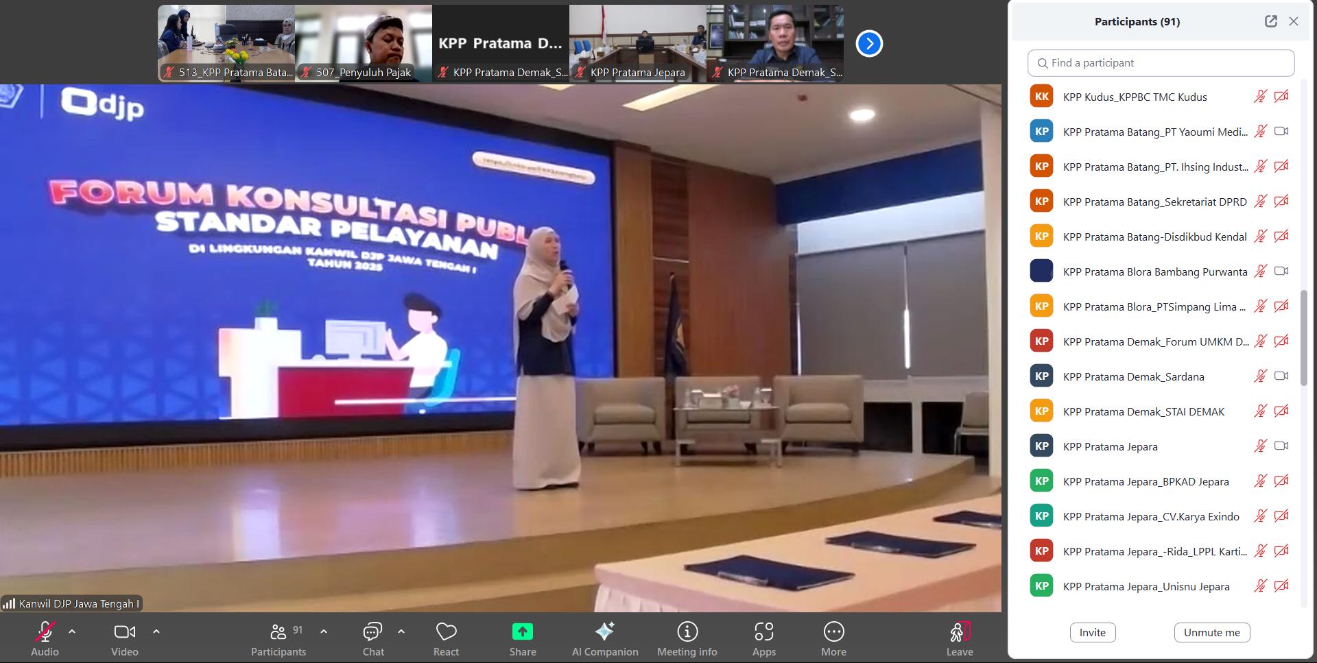 Dibuka secara resmi oleh Kepala Kanwil DJP Jawa Tengah I, Nurbaeti Munawaroh, dalam sambutannya menekankan pentingnya forum ini untuk meningkatkan pelayanan publik agar lebih sesuai dengan kebutuhan masyarakat.