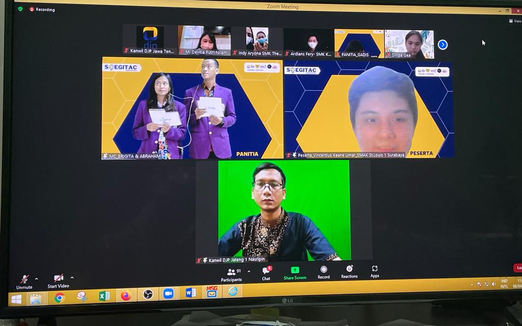 Kantor Wilayah Direktorat Jenderal Pajak (Kanwil DJP) Jawa Tengah (Jateng) I mengikuti acara Soegitac Competition 2022 yang diselenggarakan oleh Universitas Katolik (Unika) Soegijapranata Semarang melalui aplikasi Zoom Meeting di Semarang (Jumat, 08/4)