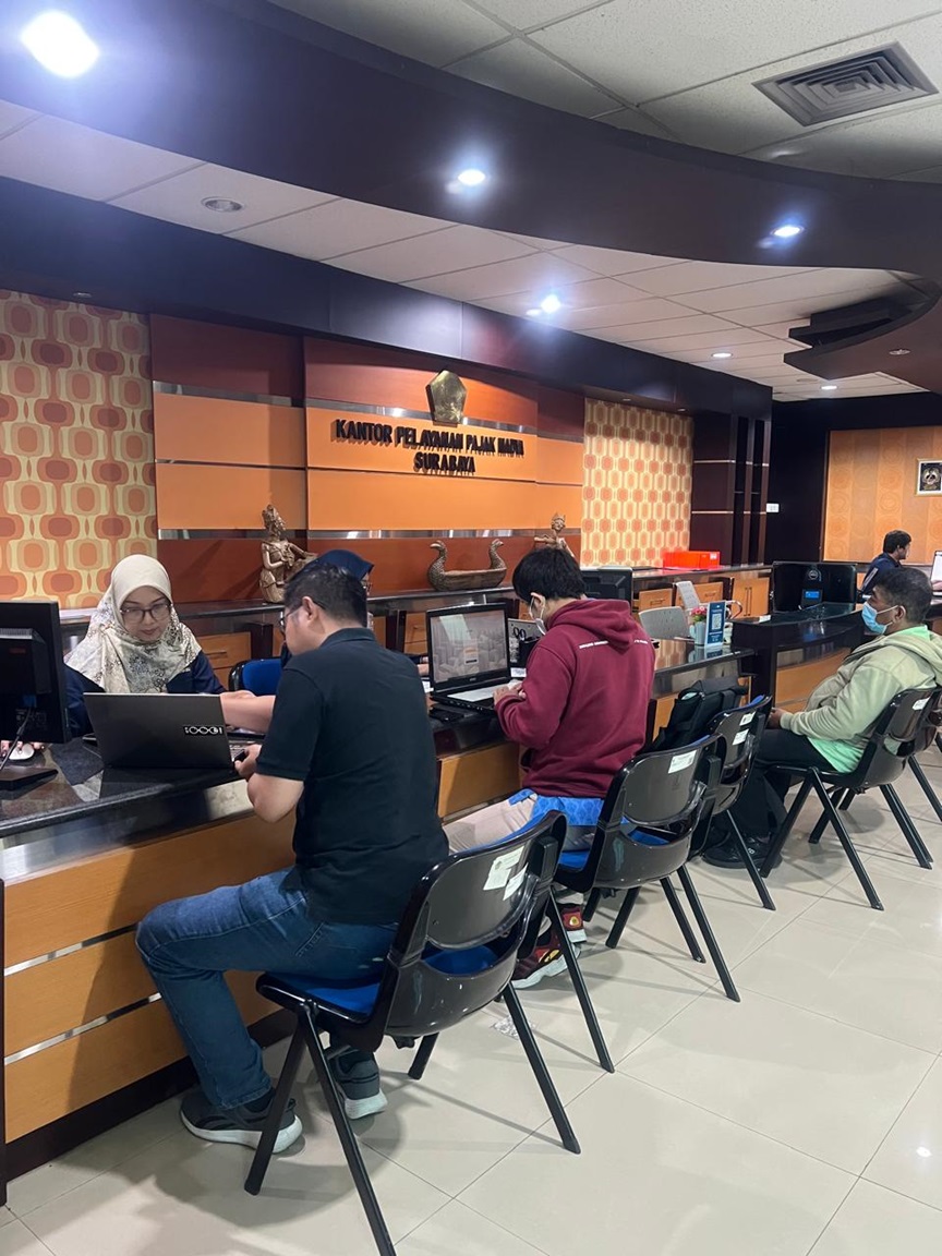 Kantor Pelayanan Pajak (KPP) Madya Surabaya memberikan layanan asistensi pelaporan Surat Pemberitahuan (SPT) Tahunan kepada Wajib Pajak Orang Pribadi dan Wajib Pajak Badan di KPP Madya Surabaya, Kota Surabaya (Rabu, 5/3).